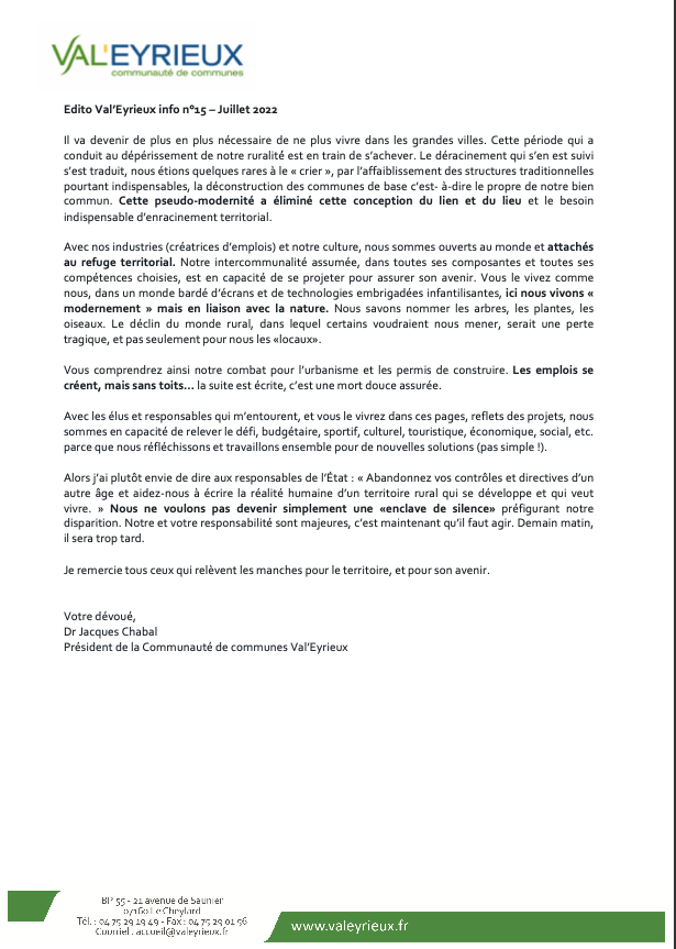 31 juillet 202229 juillet 2022 par jacqueschabal Nous ne voulons pas devenir une enclave du silence, et nous luttons contre le dépérissement de notre ruralité… Partager : Partager sur X(ouvre dans une nouvelle fenêtre) X Partager sur Facebook(ouvre dans une nouvelle fenêtre) Facebook J’aime chargement…