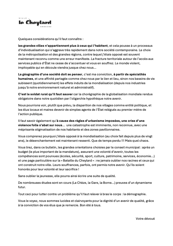 2 août 202425 juillet 2024 par jacqueschabal Mise en garde aux responsables nationaux, la fracture se vit en RURALITÉ. Devant l’évolution de notre société politique, lire « les éditos pour vivre la réalité de nos bassins de vie, non comprise par nos élites » Partager : Partager sur X(ouvre dans une nouvelle fenêtre) X Partager sur Facebook(ouvre dans une nouvelle fenêtre) Facebook J’aime chargement…